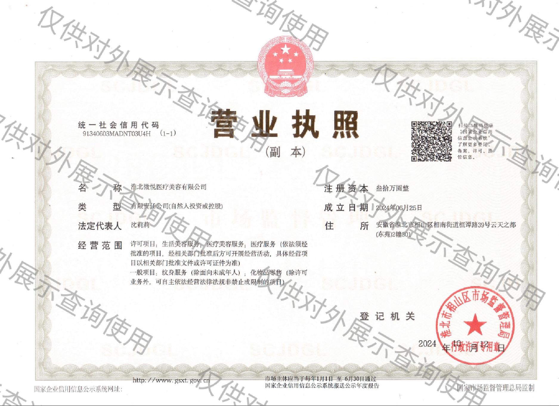 版权所有 淮北微悦医疗美容有限公司|营业执照
